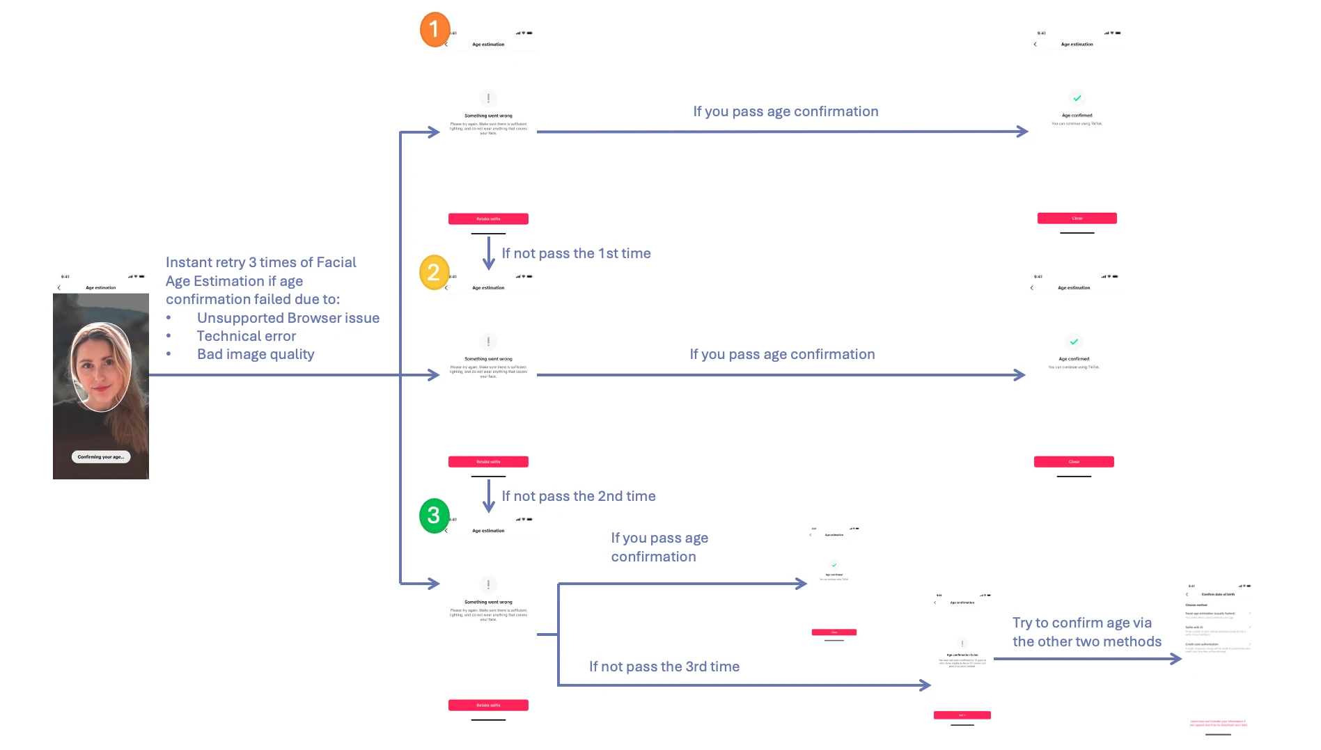 C. 如果由于某些技术问题未能确认年龄,您可以立即使用面部年龄估计重新尝试 3 次以完成年龄确认。