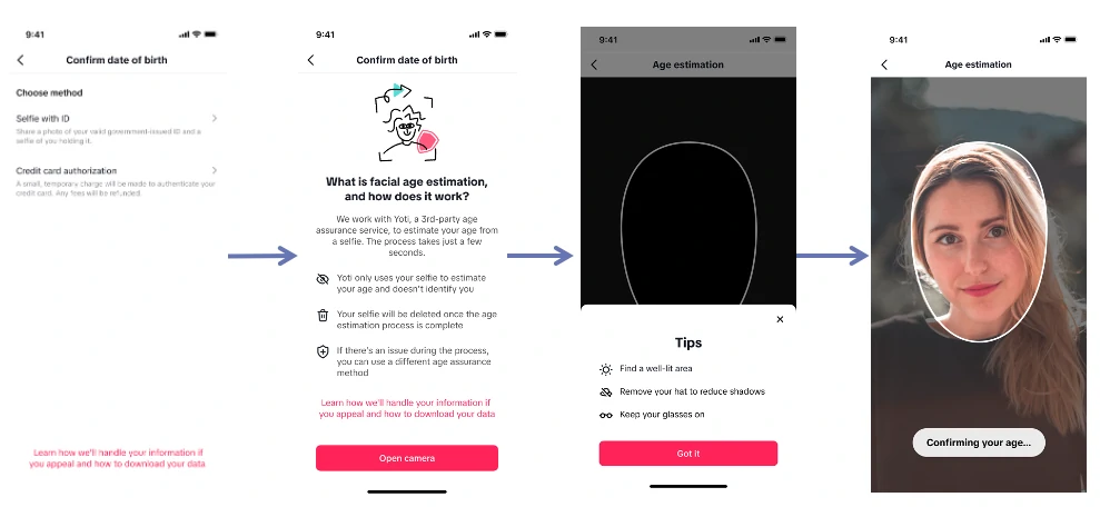 2、如果您选择“Facial Age Estimation(面部年龄估计)”来确认您的年龄,您需要按照指引将您的面部放在摄像头前。
