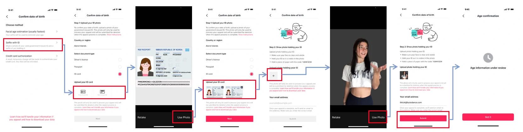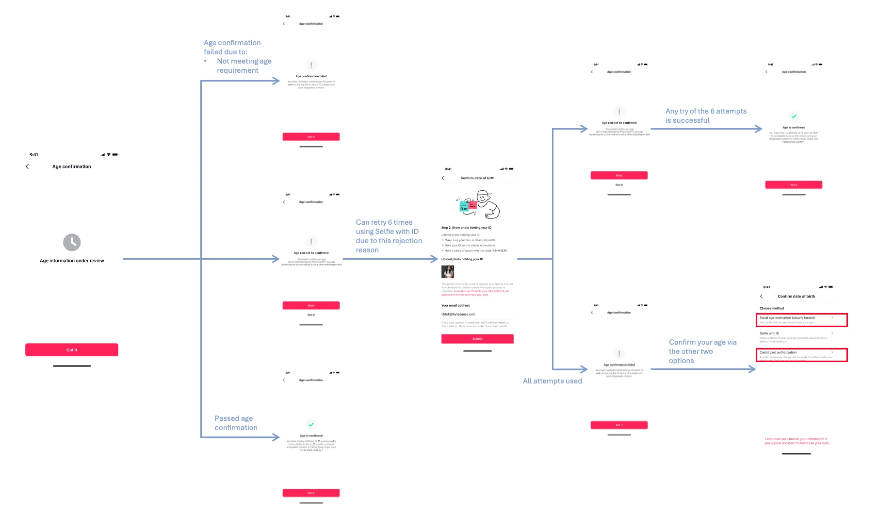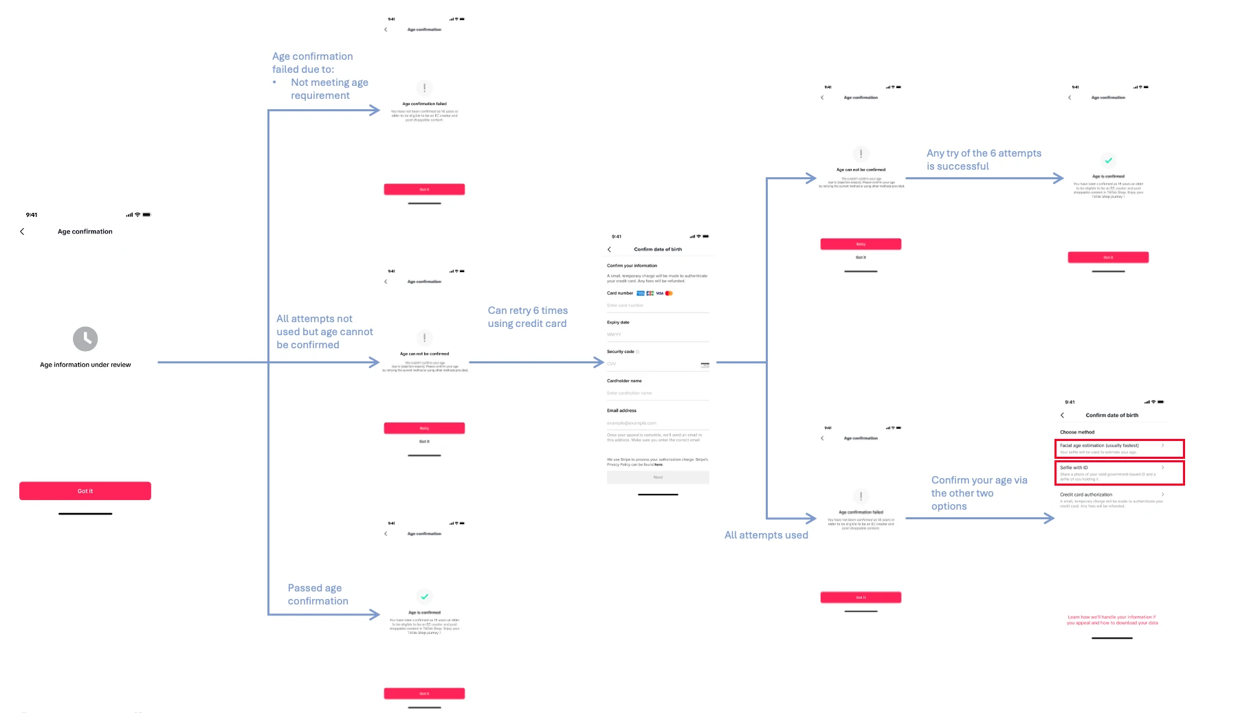 如果您因以下拒绝原因未能确认您的年龄,您仍可以通过带身份证的自拍进行重试(最多 6 次)。