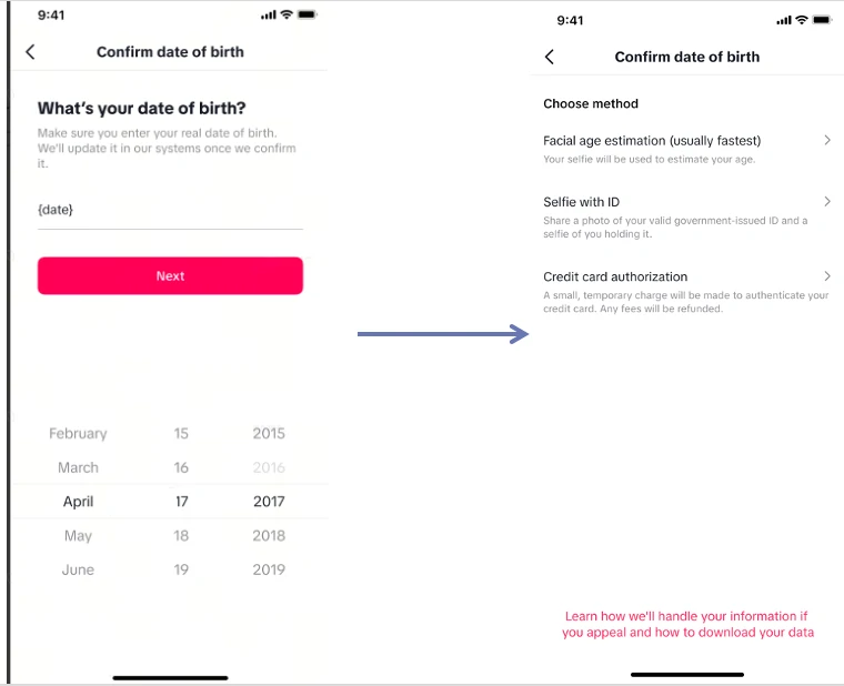 您可以通过使用其他两种年龄确认方法提出申诉,以完成年龄确认过程。